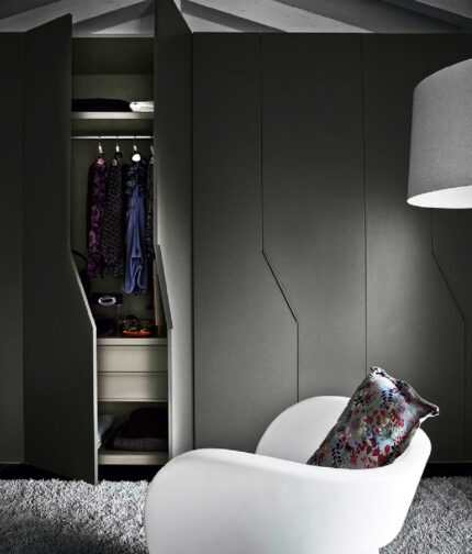 Adoptez un dressing parfaitement symétrique vous offrant votre propre espace de rangement à grande capacité. Parfait pour une pièce séparé