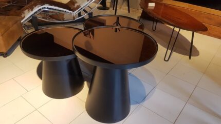 Le lot Trio en noir et en doré, composé de 3 tables basses à différents niveaux, circulaires, raffinées et aux