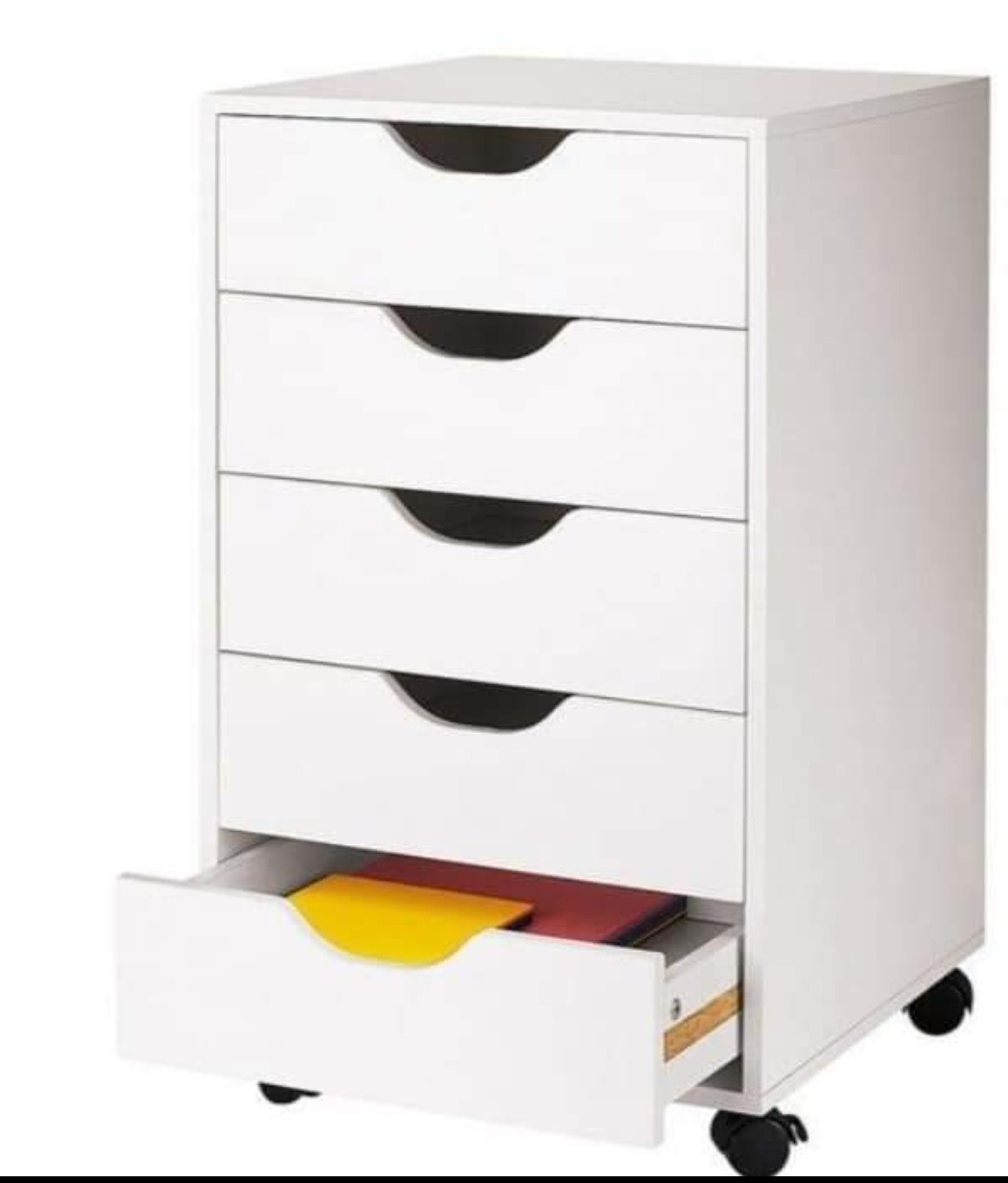 Le bloc tiroir, très facile à transporter et à modifier d’emplacement grâce à ses 4 roulettes, est composé de 5 tiroirs symétriques. Il permet une organisation optimale !